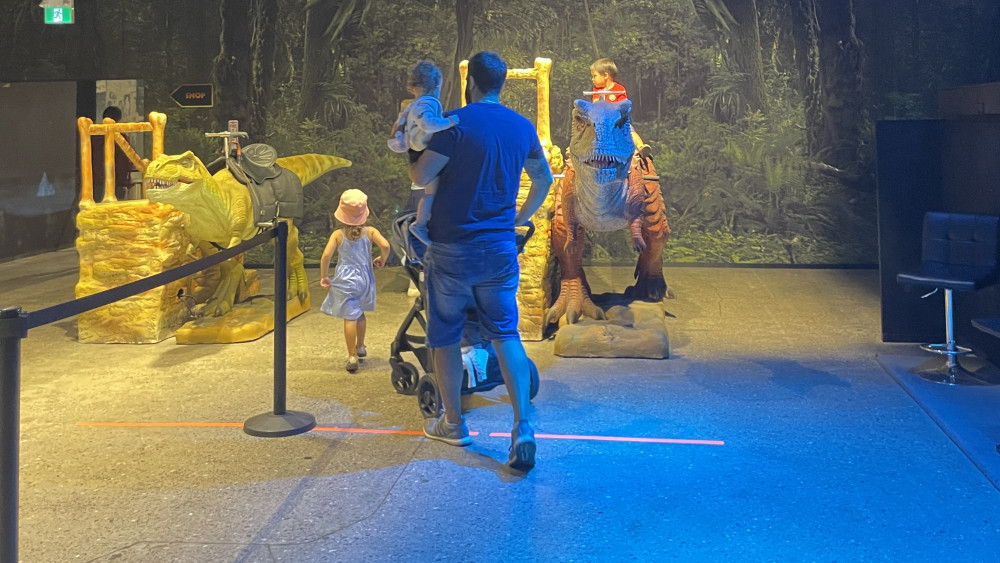 D’ailleurs, un espace interactif, Experts en herbe, a été spécialement conçu pour que les enfants puissent jouer les paléontologues en herbe, avec des activités de fouille de fossiles et la possibilité d’apprivoiser certains dinosaures. Des dinosaures mécaniques sur lesquels ils peuvent grimper confirment que la cible principale est bien les familles avec de jeunes enfants.