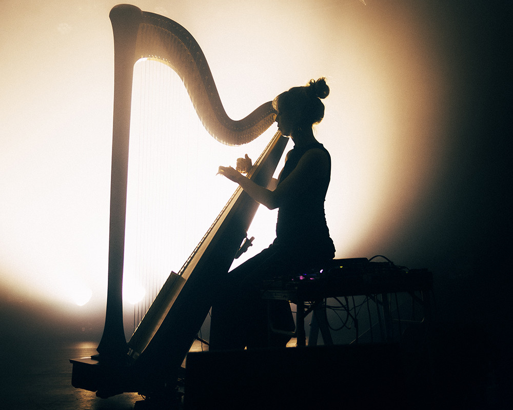 Je pénétrai dans l’Espace SAT vendredi soir dernier, avec le sentiment de passer d’un monde à l’autre. Je glissais vers l’ailleurs, le Boulevard Saint-Laurent était loin derrière moi. Un rideau de fumée diffus estompait les lumières rouges, pendant que la voix enchanteresse de Nadah El Shazly et les notes de harpe de Sarah Pagé remplissaient mes oreilles. La scène était digne d’un conte de fée, se déroulant dans un château de béton quelque part entre le Caire et Montréal.