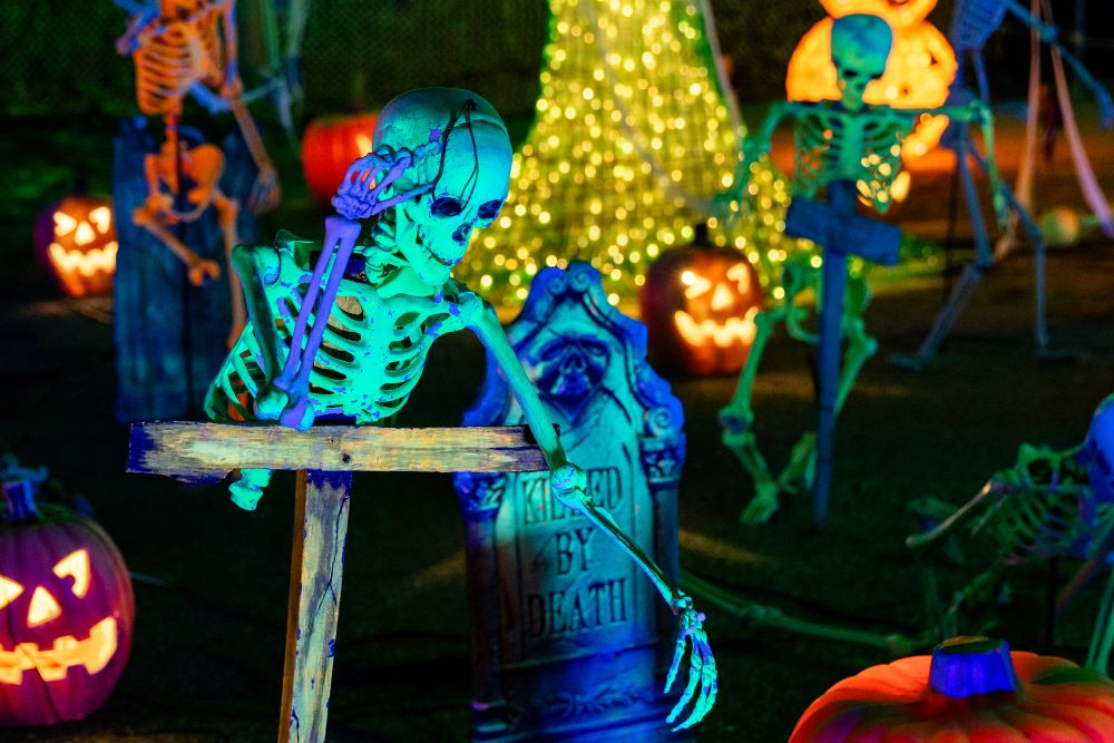 C’est aussi une section « parc jurassique » avec deux imposants et impressionnants dinosaures animés. Une saisissante section « arachnides » où se retrouvent une multitude d’araignées de toutes tailles, y compris deux gigantesques spécimens, entièrement illuminées de petites lumières rouges.