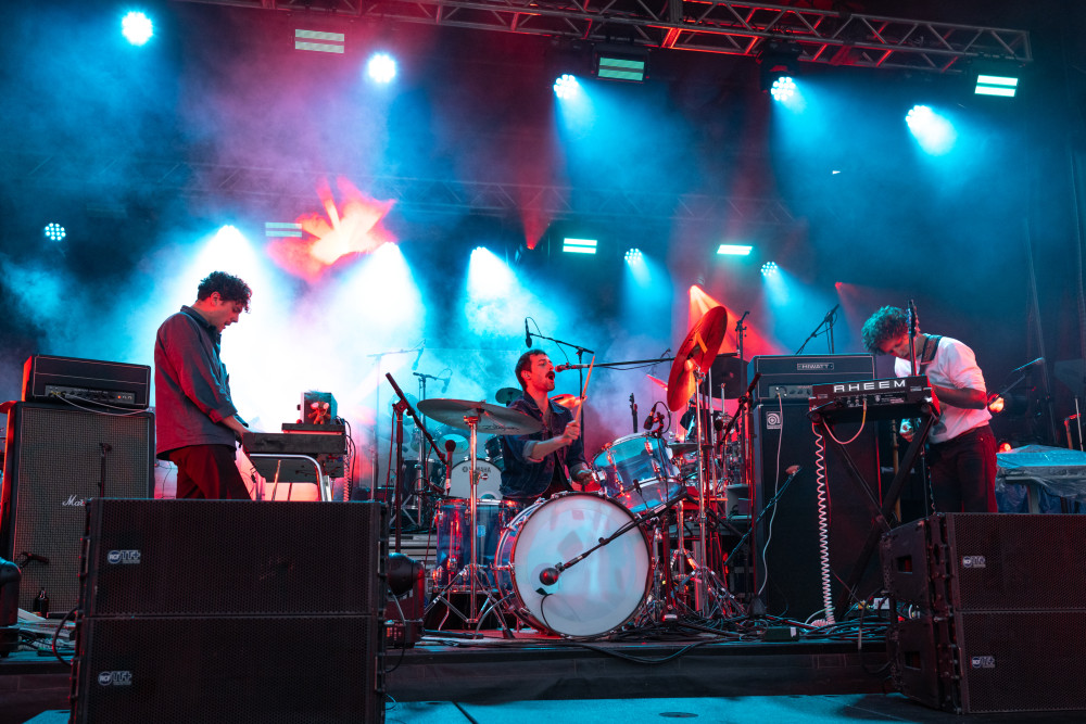 Population II s’est emparé de la scène extérieure vers 20 h avec une énergie brute et alléchante, annonçant un méchant bon show de rock psychédélique. Le trio montréalais composé du chanteur et batteur Pierre-Luc Gratton, du guitariste et claviériste Tristan Lacombe, et du bassiste Sébastien Provençal s’est lancé dans une prestation effrénée et sans compromis.