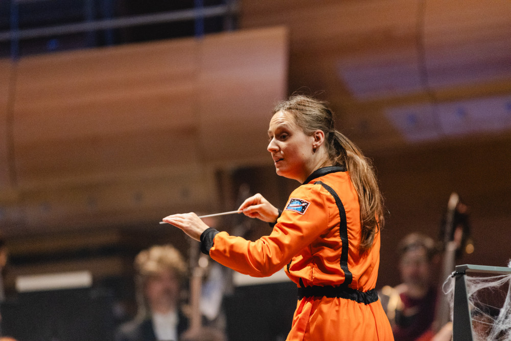 Dina Gilbert, réputée cheffe invitée et « directrice musicale et cheffe du Walla Walla Symphony (Washingrton, États-Unis) ainsi que cheffe attitrée des Grands Ballets Canadiens de Montréal »